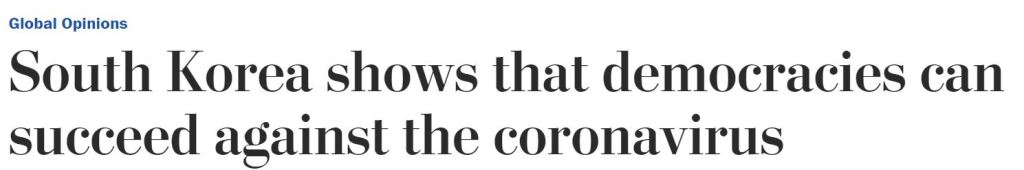 (韓国の反応は(中国に比べ)より敏感だった。批判や検証に対してオープンであるためだ。そのため、韓国の経済状況は、公衆衛生と相まって、中国より早く回復するだろう。これは文大統領にも政治的にはいいことだ。トランプ大統領も、ウイルスは「勝手に消滅する」などと言う前にこうした側面を考えてみたほうがいいかもしれない。)