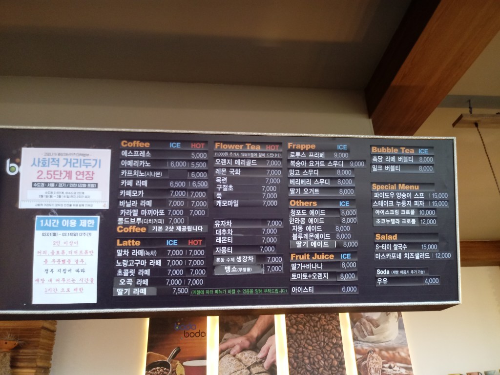 メニュー板です。韓国語が分かる方は読解にチャレンジしてみても面白いかも!