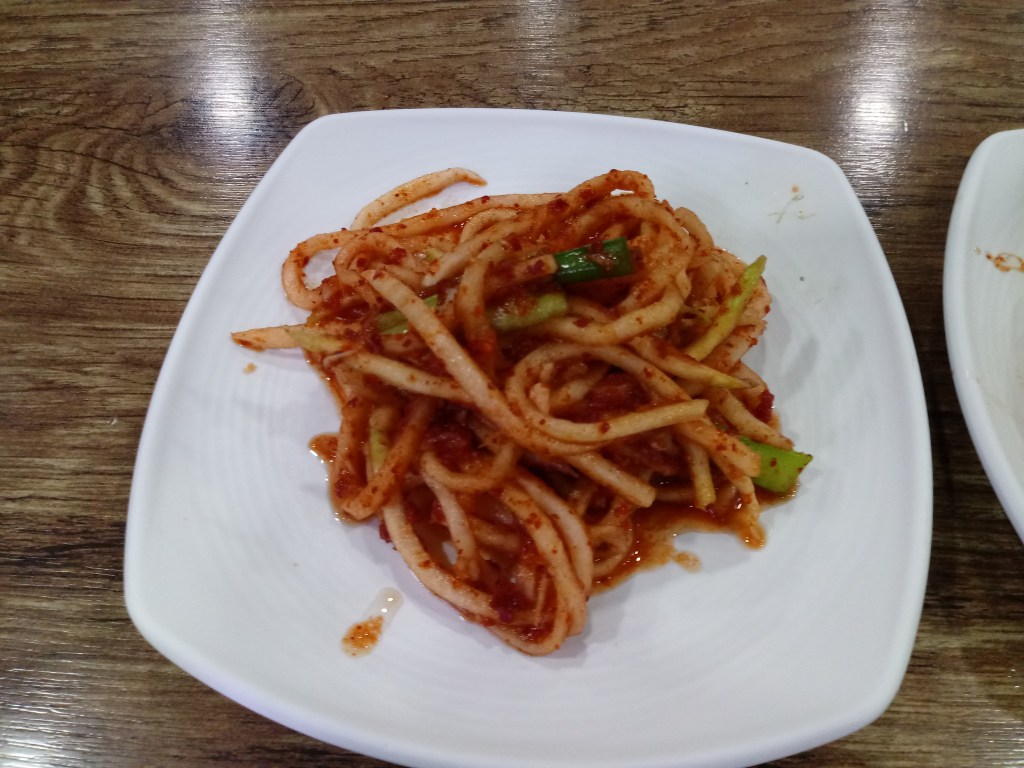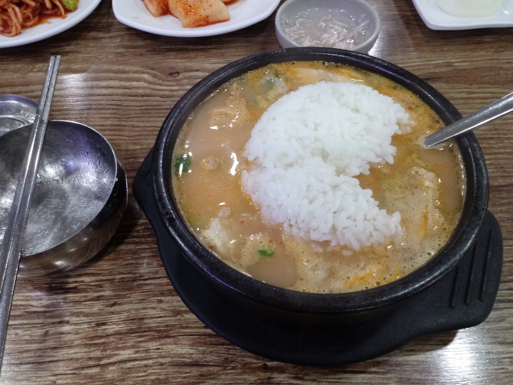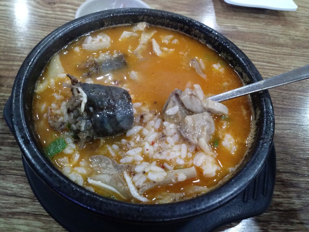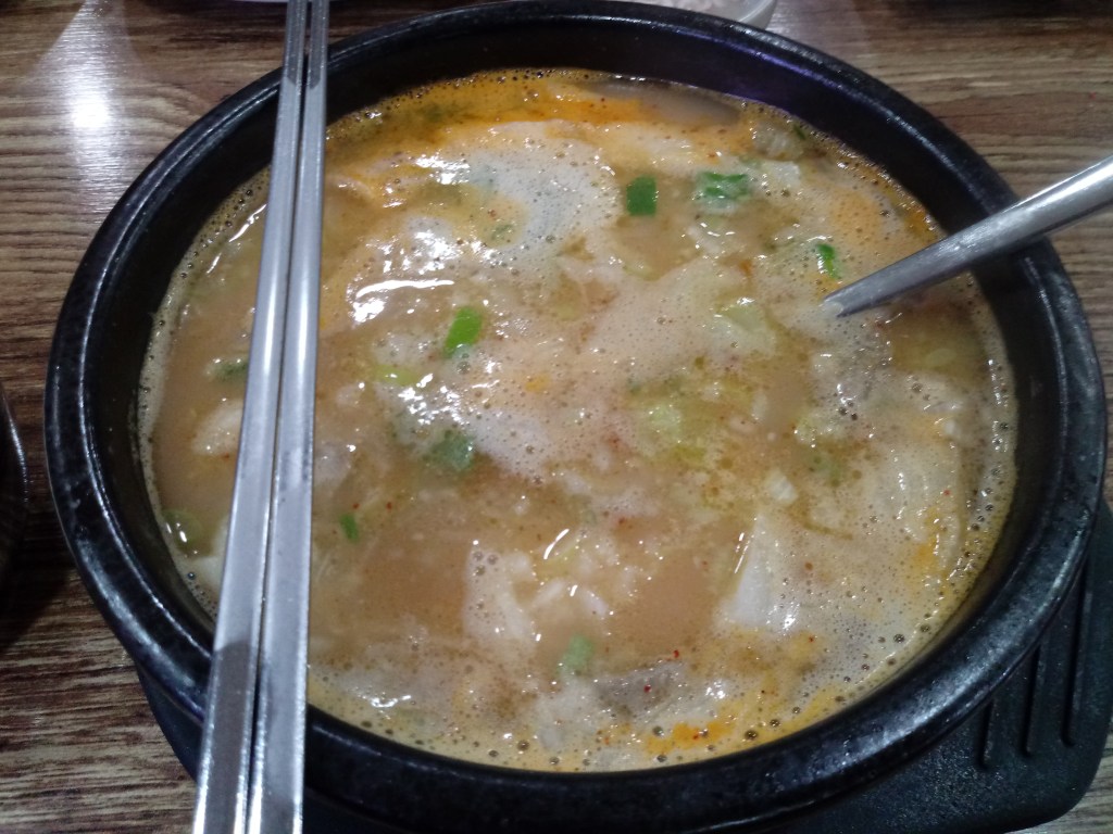 今日の #韓国料理 #スンデクッパ Posted byAtsushiFebruary 8, 2021February 8, 2021Posted in韓国生活Tags:韓国料理 スンデクッパ(순대국밥)を頂きました。 これを.. こうじゃ まろやか 緑の長いのはニンニクです。白の丸いのは玉ねぎです。 このスンデクッパは9,000ウォンでした。 #韓国 #料理 #韓国料理 Share this: Click to share on X (Opens in new window) X Click to share on Facebook (Opens in new window) Facebook Like Loading... Related Published by Atsushi I am a Japanese blogger in Korea. I write about my life with my Korean wife and random thoughts on business, motivation, entertainment, and so on. View more posts