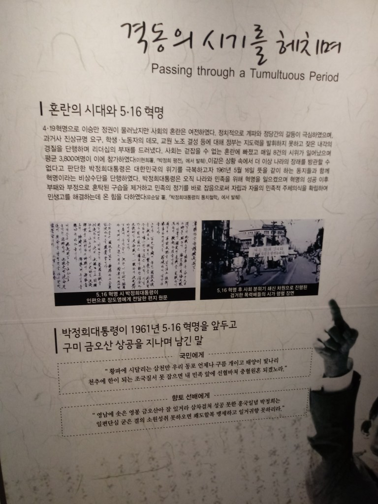 朴将軍と言えば1961年の軍事クーデターであるが、この記念館にはクーデターという単語は使われていない。5•16革命という名で美化されている。
