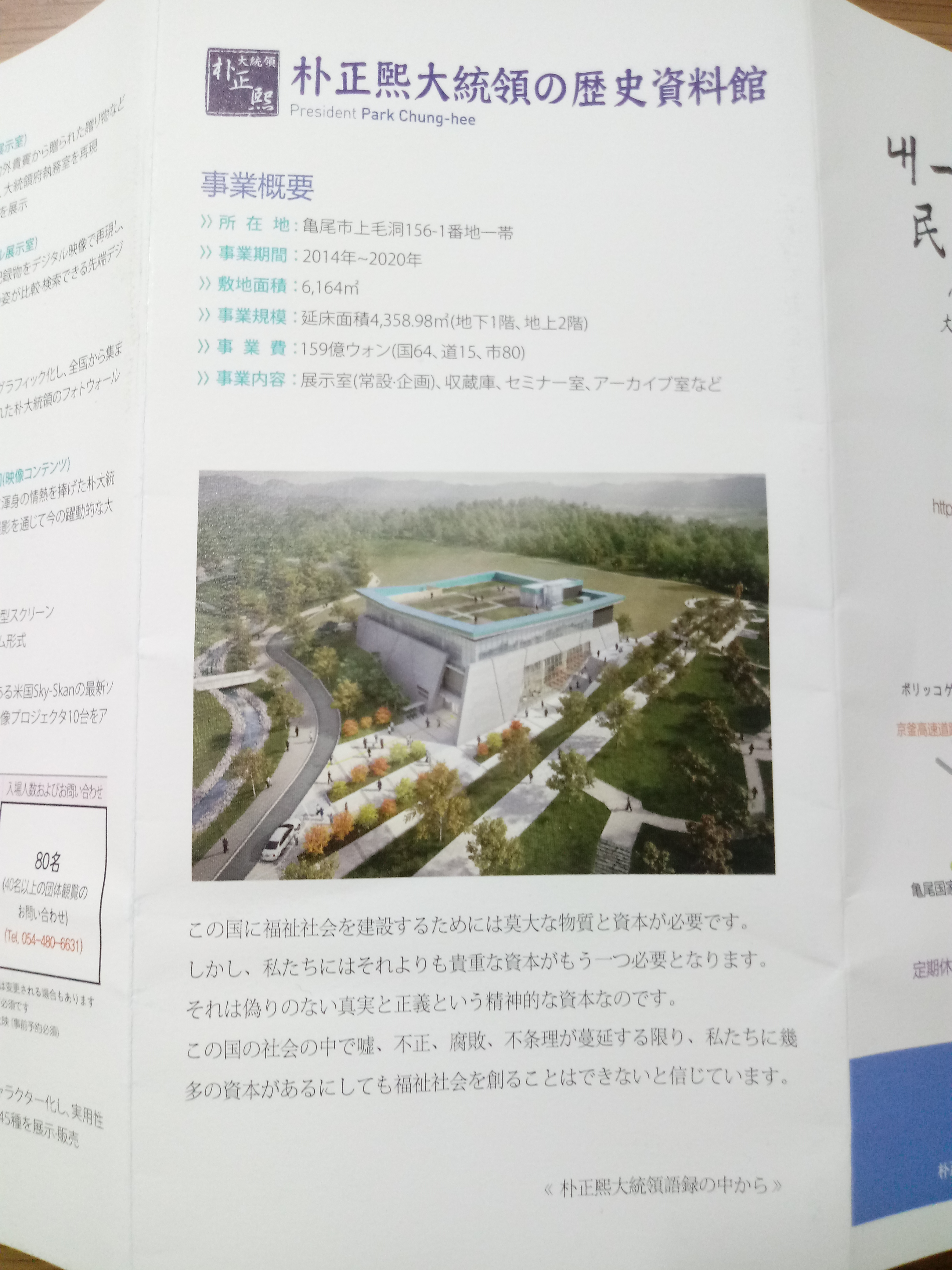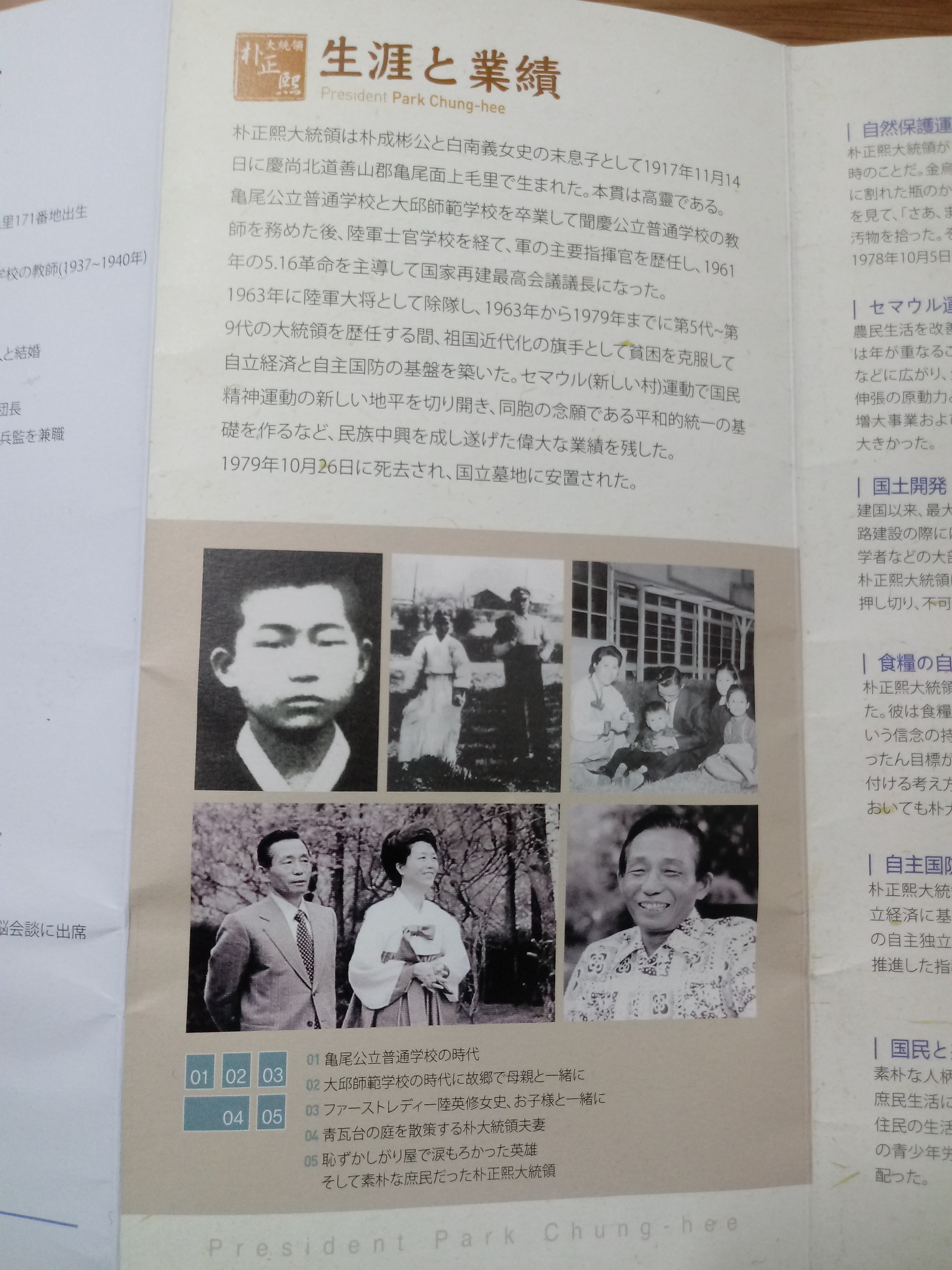 とにかく偏った記念館だった。芳名録も完全に朴将軍に私淑する親日右翼コメントばかりだった。