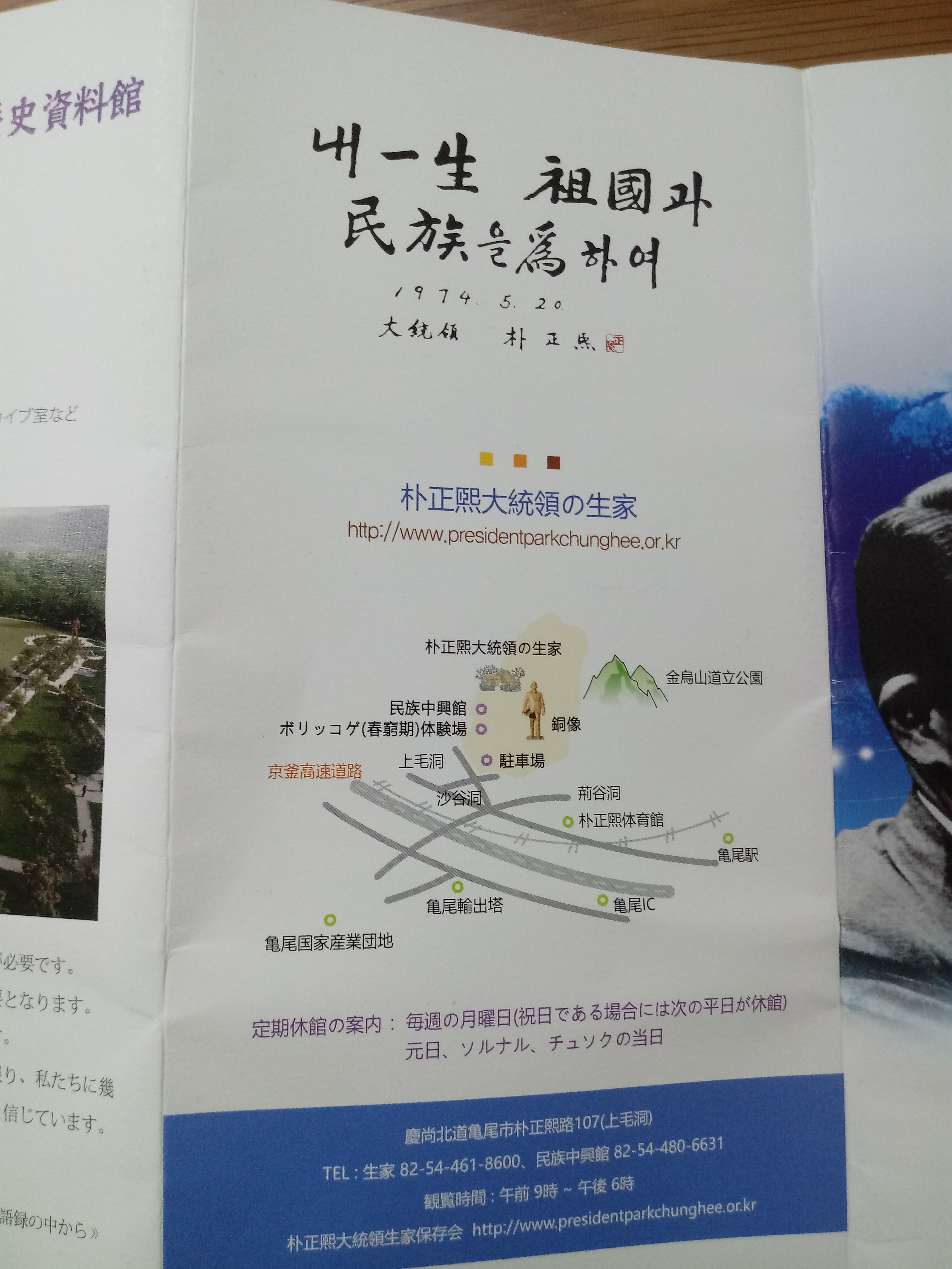 さて、朴正熙大統領(以下、朴将軍)の生家は、韓国東南部の慶尚北道、亀尾(「かめお」ではなく「クミ」)市にある。