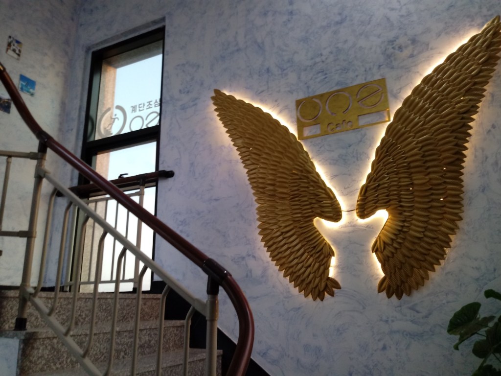 この窓に書いてあるのは「너는 참 예쁘다. 눈부시게 아름답다.」(あなたは本当にきれいだ。眩しいくらい美しい。)という韓国語です。