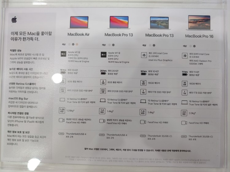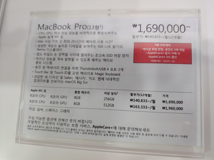 Now let’s see the price for my MacBook Pro 13 (M1)! Looks like if I choose the larger storage type(512 GB), it will cost me 1,960,000 KRW. Not so cheap. But not unaffordable, either.