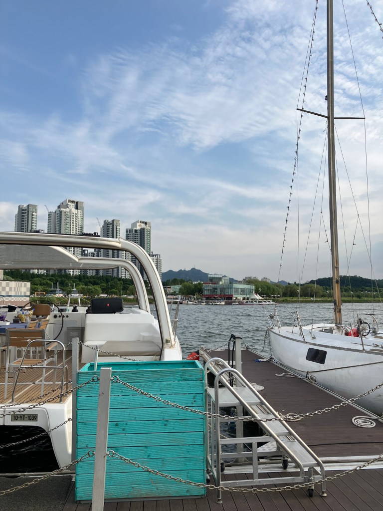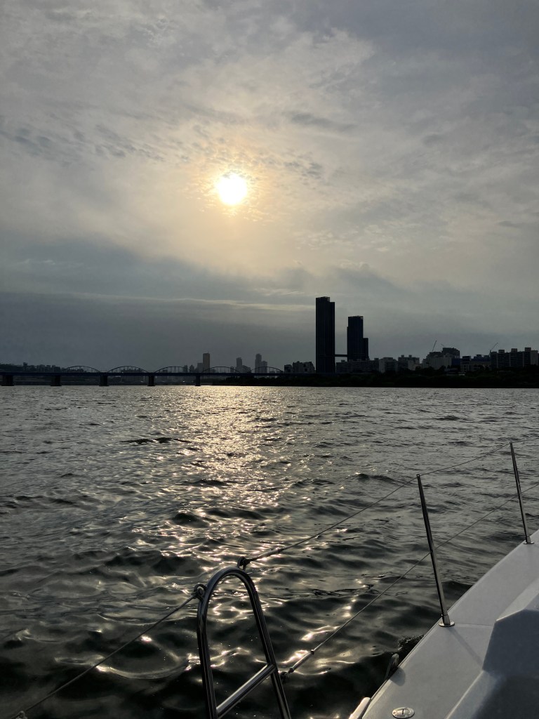 As the sun began its descent, casting a golden hue across the horizon, Seoul revealed its mesmerizing beauty from the vantage point of the river. The cityscape was awe-inspiring, and it felt refreshing to escape the usual routine and appreciate the splendor of the sky. It was a much-needed rejuvenation for us.