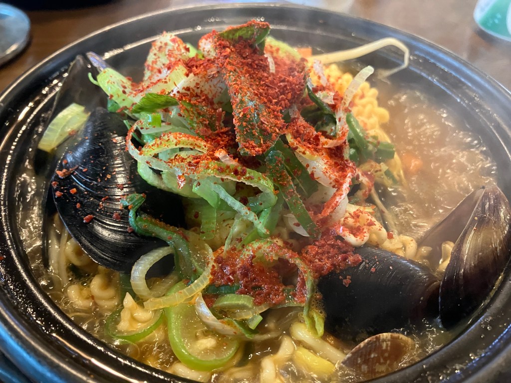 At first glance, 해장라면 might seem like an ordinary bowl of noodle soup. But dive in, and you’ll discover a rich, spicy broth that’s simmered to perfection, embracing a tangle of springy noodles. Each bowl is an adventure, often adorned with an assortment of ingredients like green onions, seaweed, and succulent pieces of meat or seafood — commonly shellfish. It’s the generous sprinkle of red chili flakes that sets the stage for the magic to happen, invigorating the senses and kick-starting the metabolism.